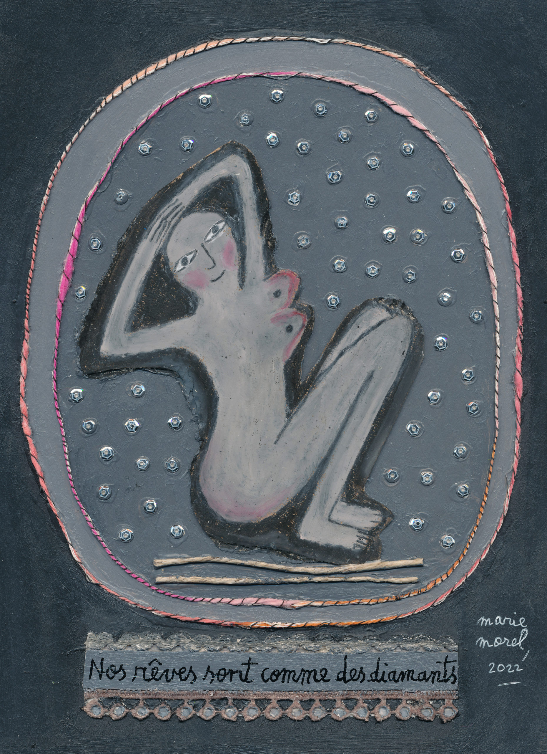 à ce qui est. Sans doute n’est-ce pas un hasard si Marie Morel, au milieu de ses noirs de peintre, qui